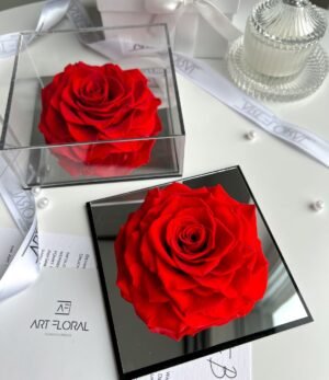 Die Farbe Rot steht für die tiefen Gefühle und die Romantik zwischen zwei Menschen. Eine ewige Rose im Acrylrahmen ist daher eine symbolische und wunderschöne Art, Ihre Liebe und Wertschätzung zu zeigen.